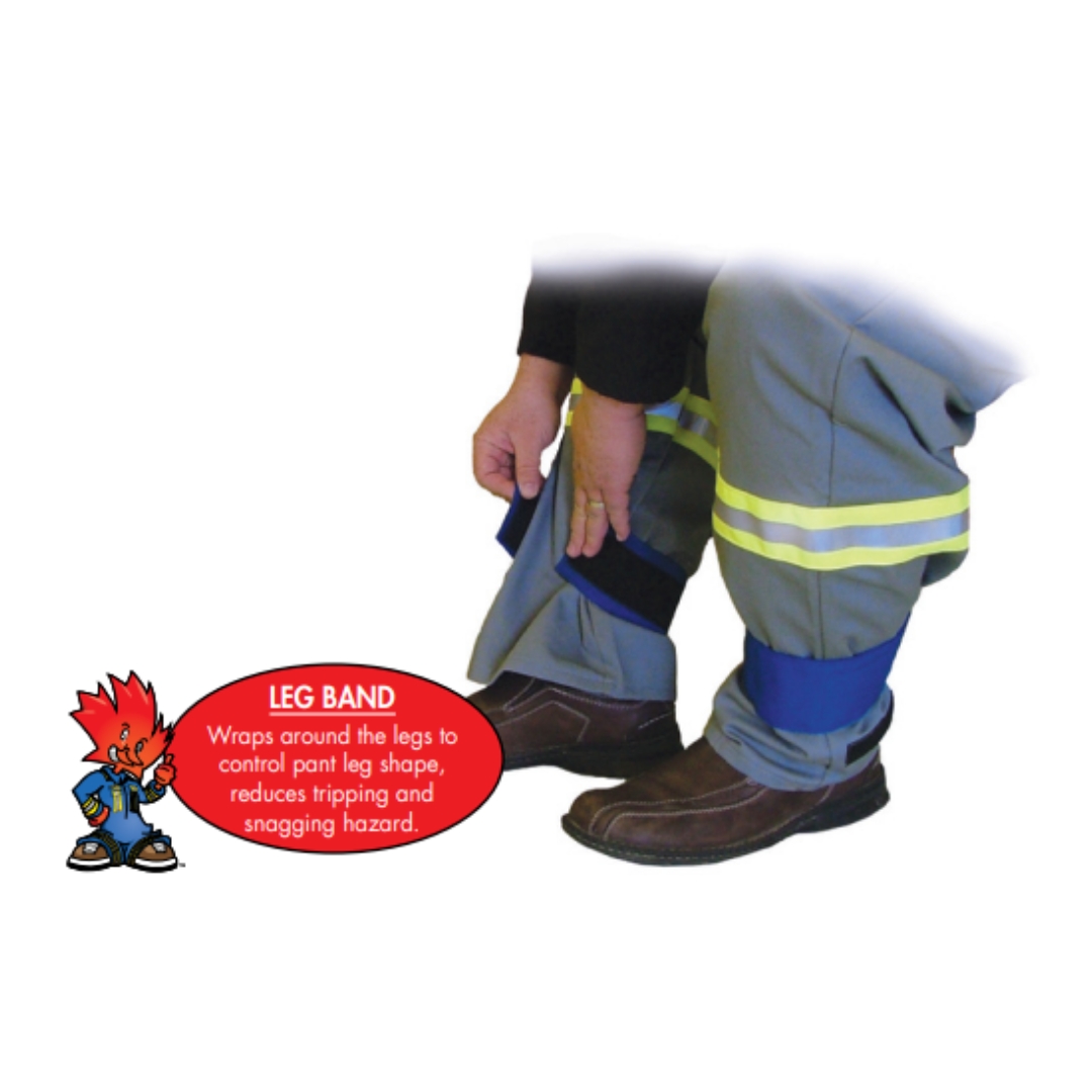 Wraps around the legs to control pant leg shape, reduces tripping and snagging hazard.