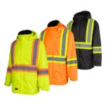 This garment has been tested in accordance with the test method CAN/CGSB-4.2 No.27.10 & ASTM D6413 Flame Resistance, Self Extinguishing for Momentary Contact with Open Flame. In contact with flame, this garment will resist ignition, and /or self-extinguish. The intended use of the garment is for protection from liquids including water, oil, light acids, and caustics. This garment also provides wind resistance and acts as a thermal layer against harsh elements, while providing increased visibility of the wearer. This garment is not intended as protection from hydrocarbon flash fires, electric arc hazards, or welding sparks.