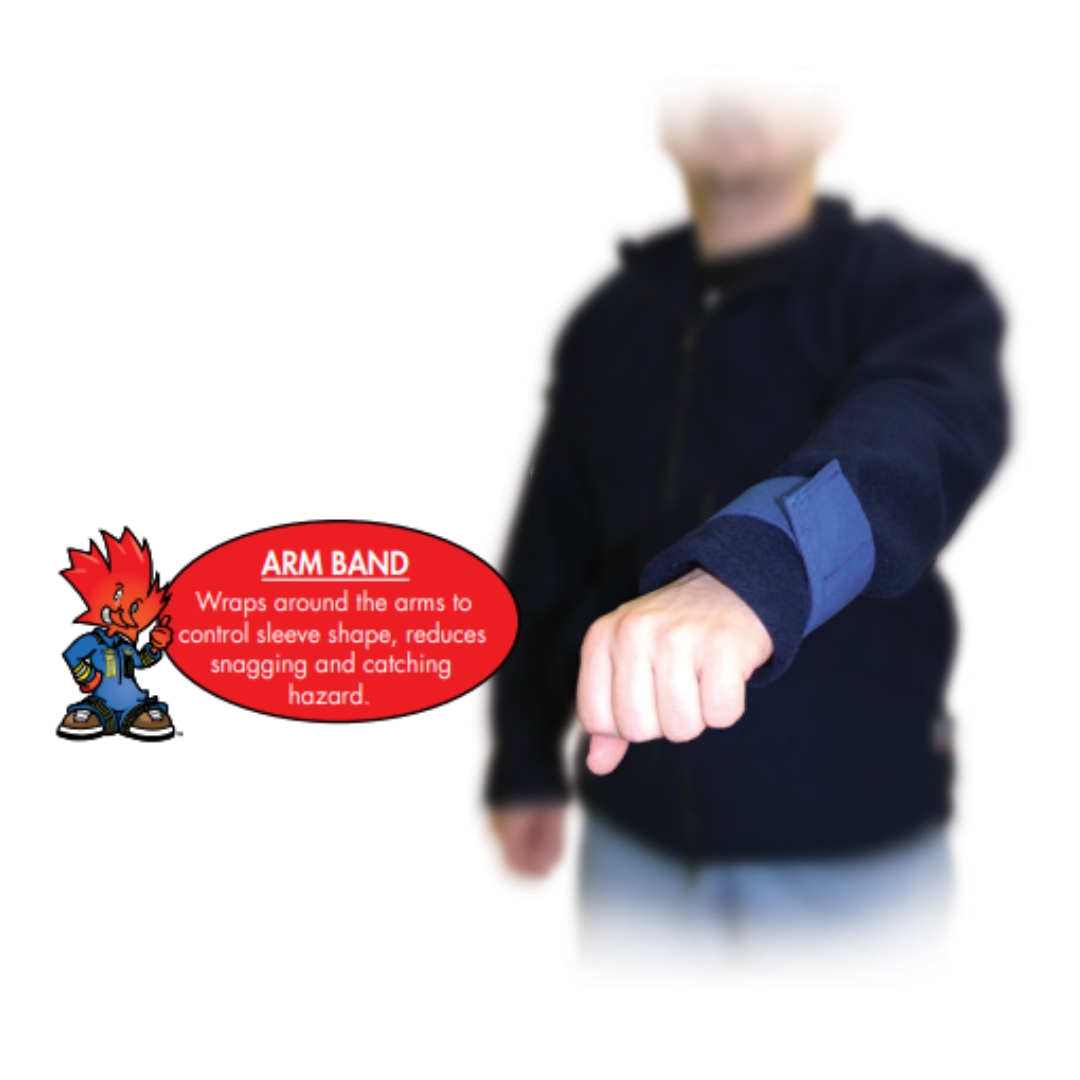 Wraps around the arms to control sleeve shape, reduces snagging & catching hazard.