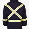 - Lowered X striping on back to allow room for company logo or hooded undergarment