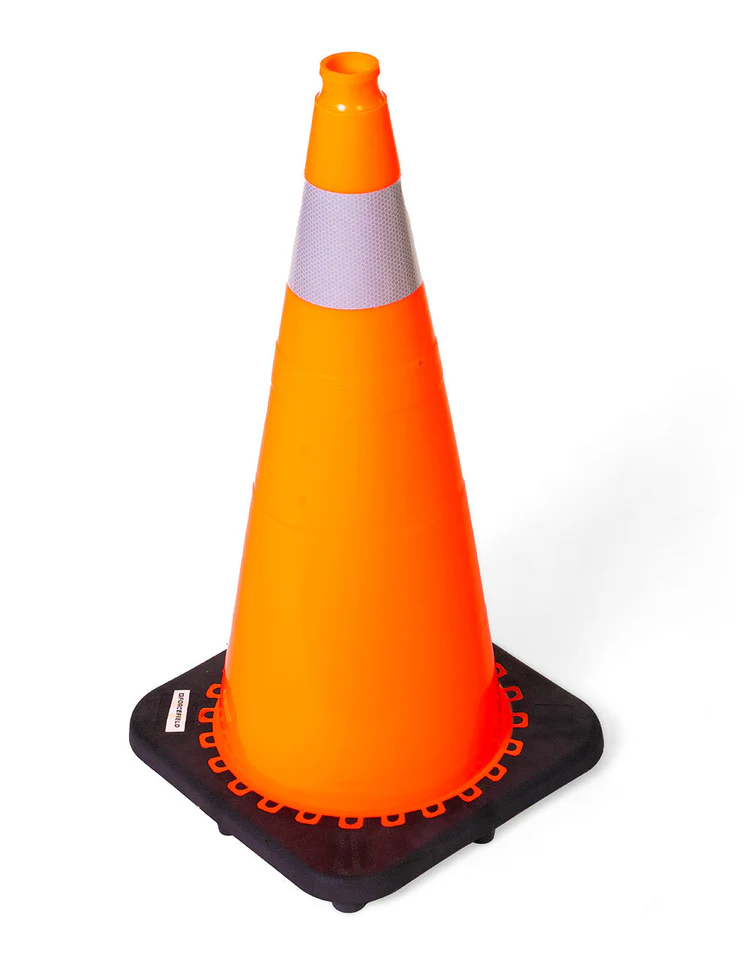 Durable PVC traffic cones withstands bad weather and bad drivers. Meets or exceeds MTO specifications with reflector.