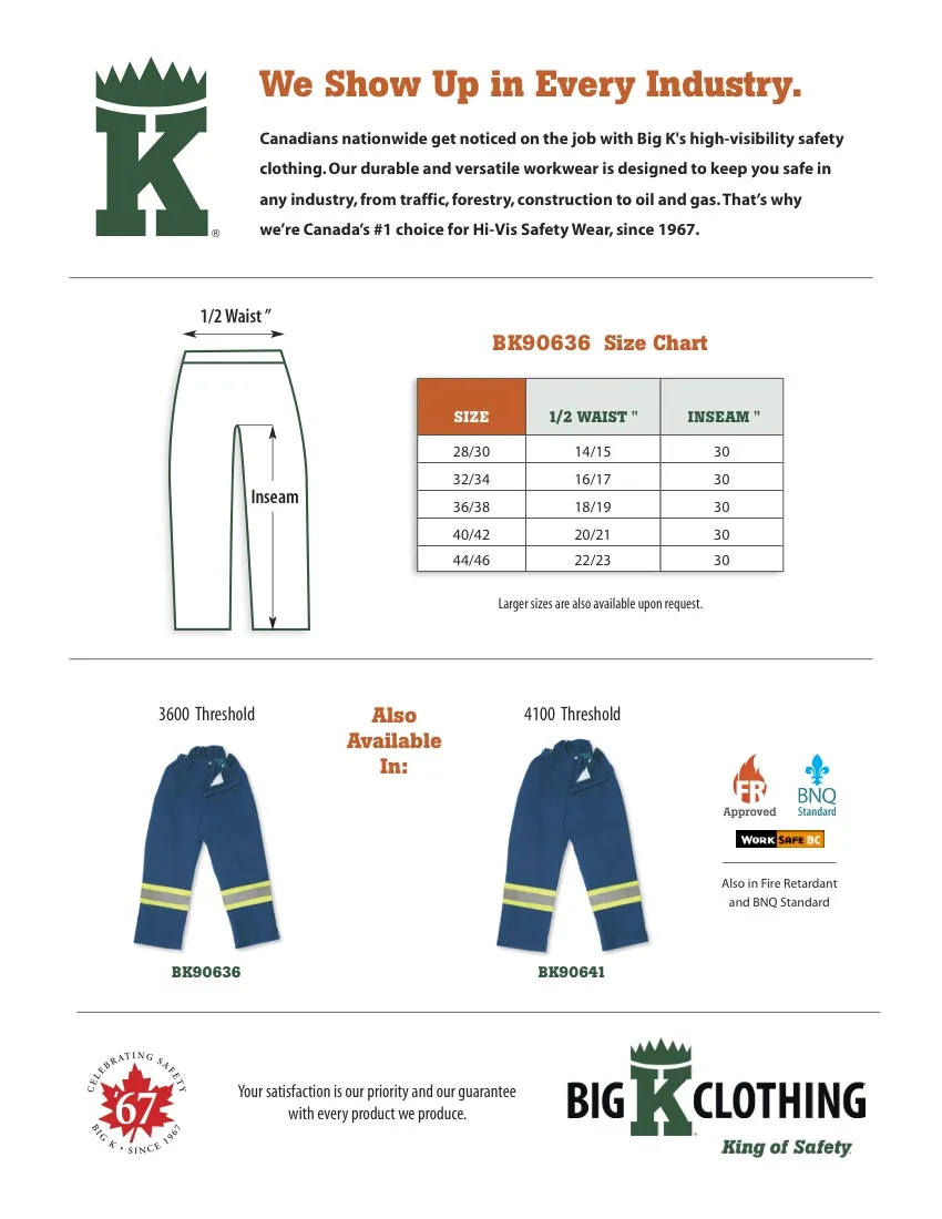 stress points bar-tacked, 36″ long waist to ankle 4-ply