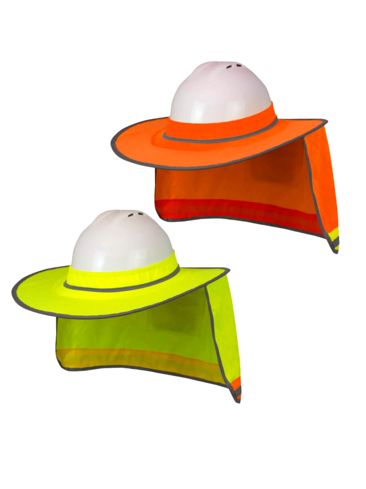 The Radians RHHS-01 Collapsible Hard Hat Shade shields the face and neck from the heat of the sun while facilitating evaporation of perspiration. It fits most hard hats, including half brim and full brim, and folds easily to store in a self-contained attached pouch.
