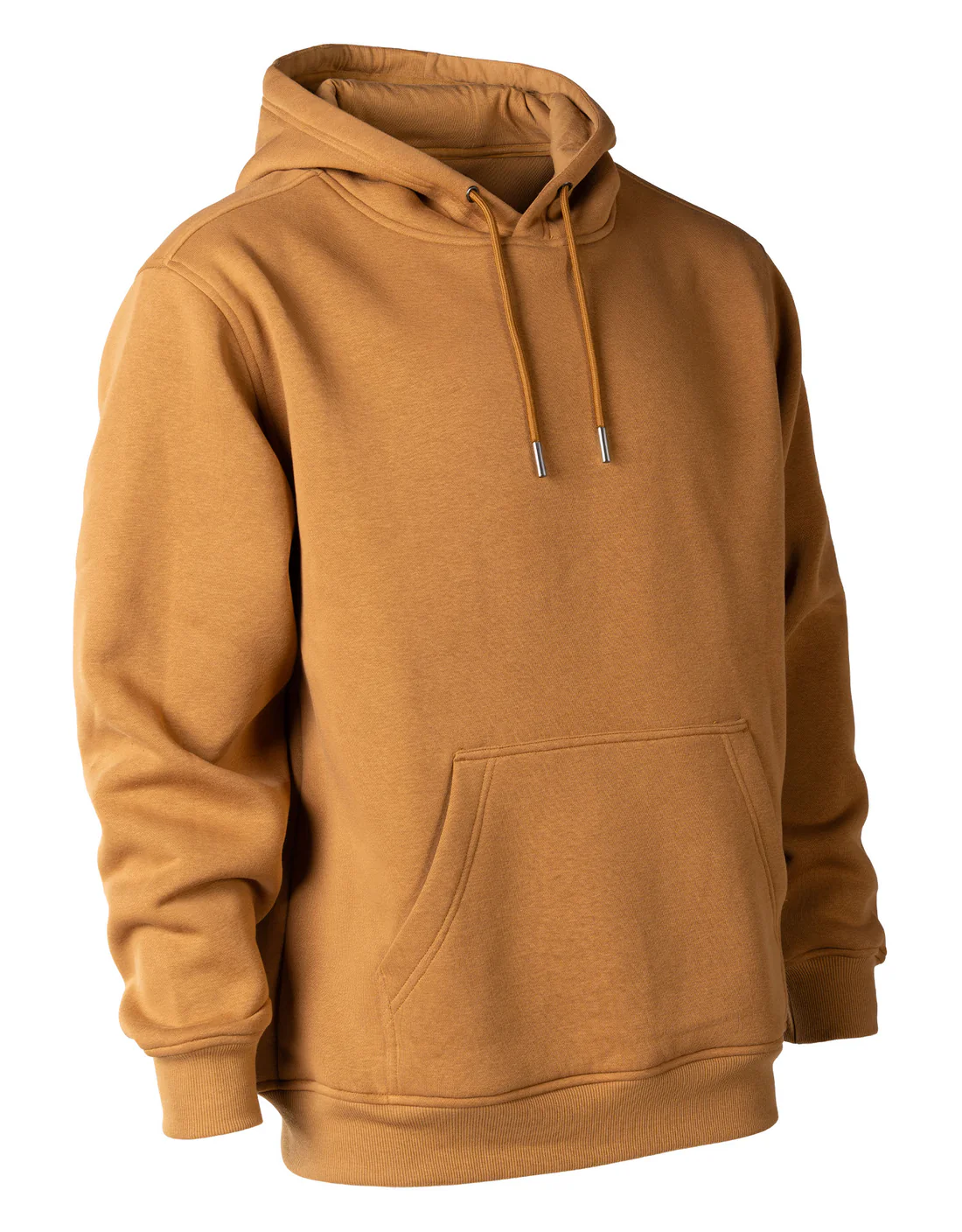 The Pullover Cotton Blend Fleece Hoodie delivers heavyweight comfort with a relaxed fit and ultra-soft fleece lining. Built from a 350 GSM cotton/poly blend, it resists pilling, features a classic kangaroo pocket, and metal-tipped drawstrings, perfect for layering up on chilly days or off-duty downtime.