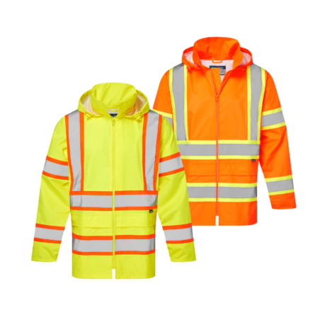 Designed to keep the wearer visible, safe and dry in foul weather conditions, the CA400 is extremely practical and waterproof. Made with 100% polyester 190T yarn, this plain weave fabric is durable and hard wearing for tough conditions. This fabric is lightweight and has superb abrasion and tear resistance. It has a PVC coating inside which makes the fabric waterproof and has a water repellent coating on the outside which helps keep the garment clean.