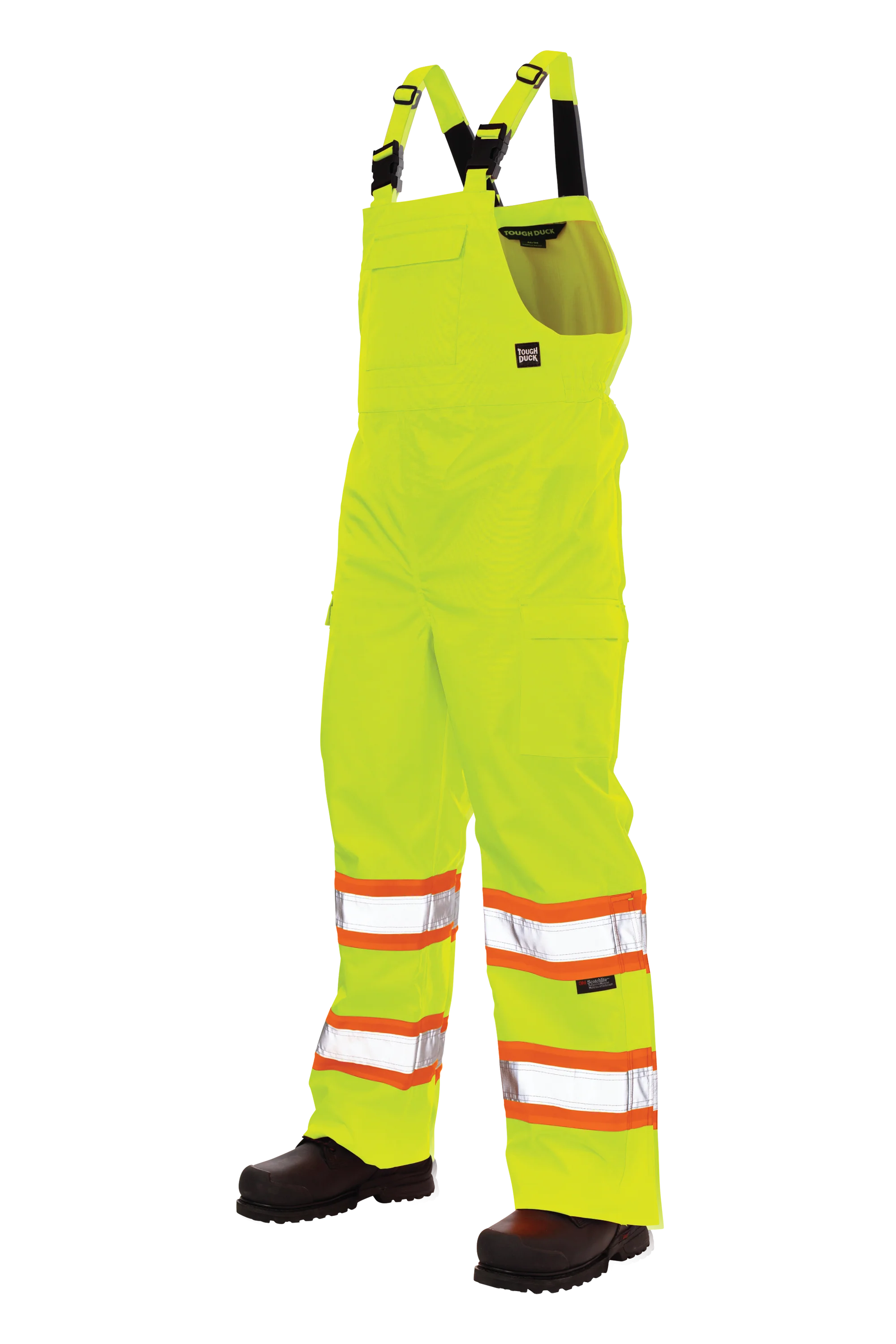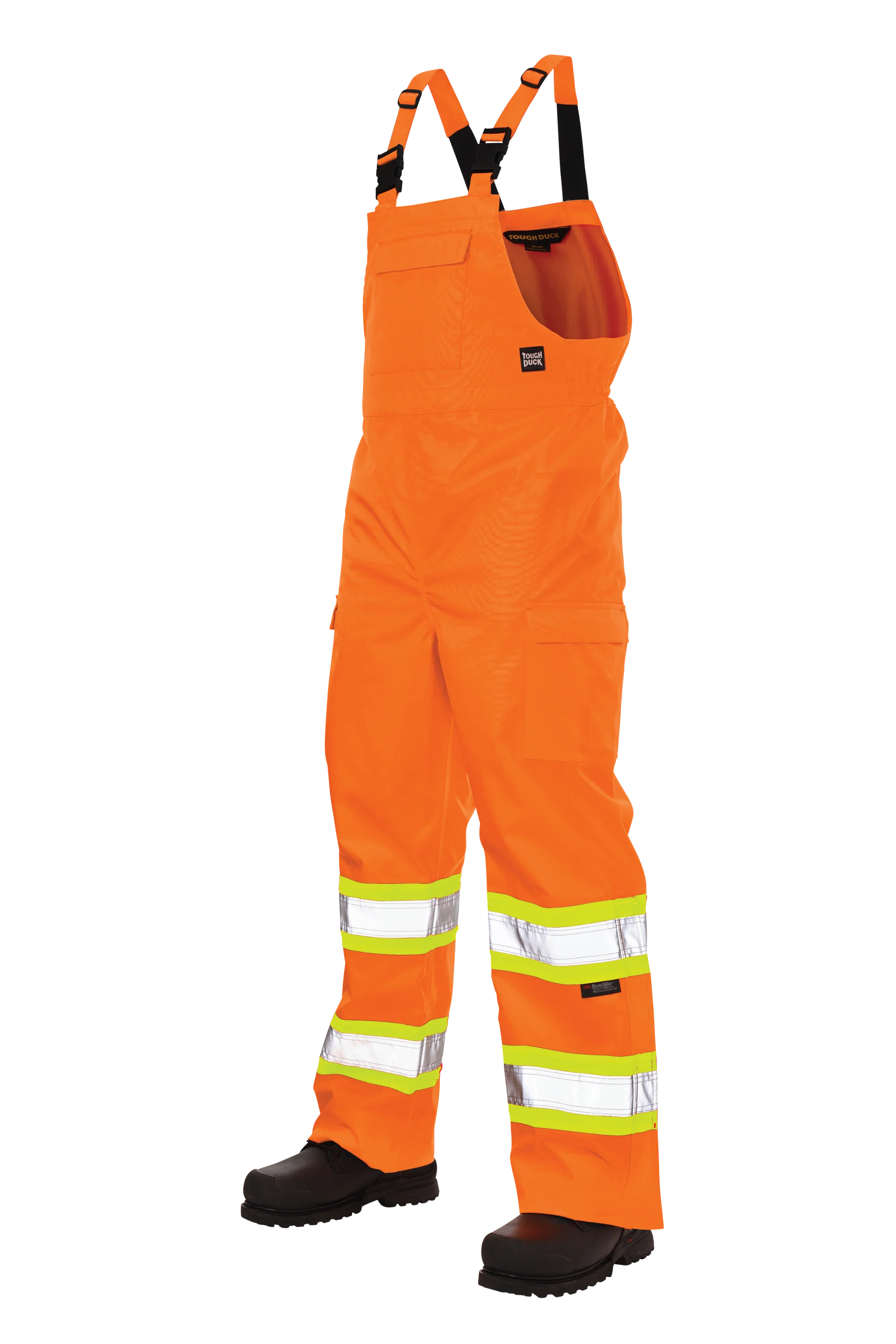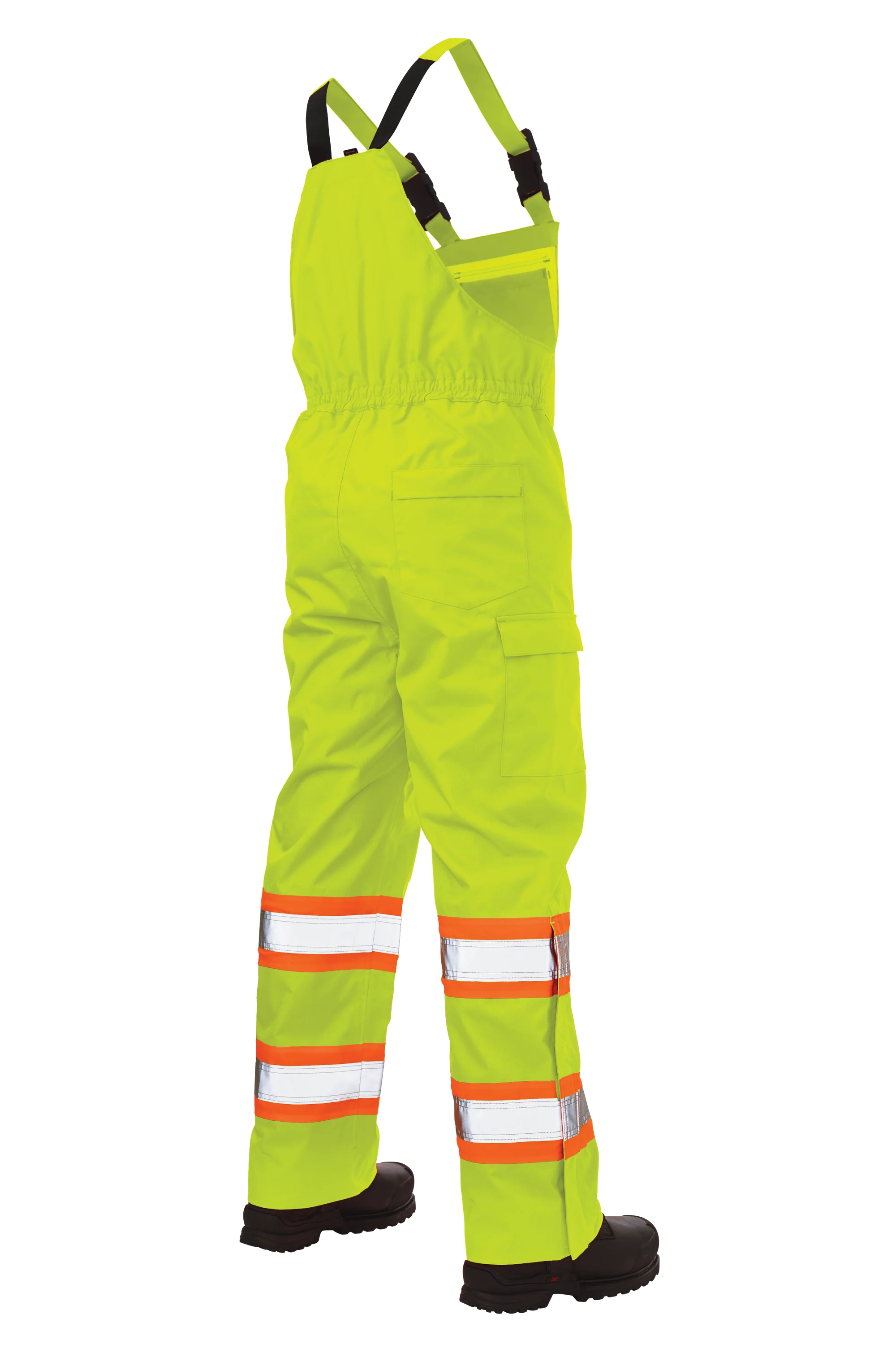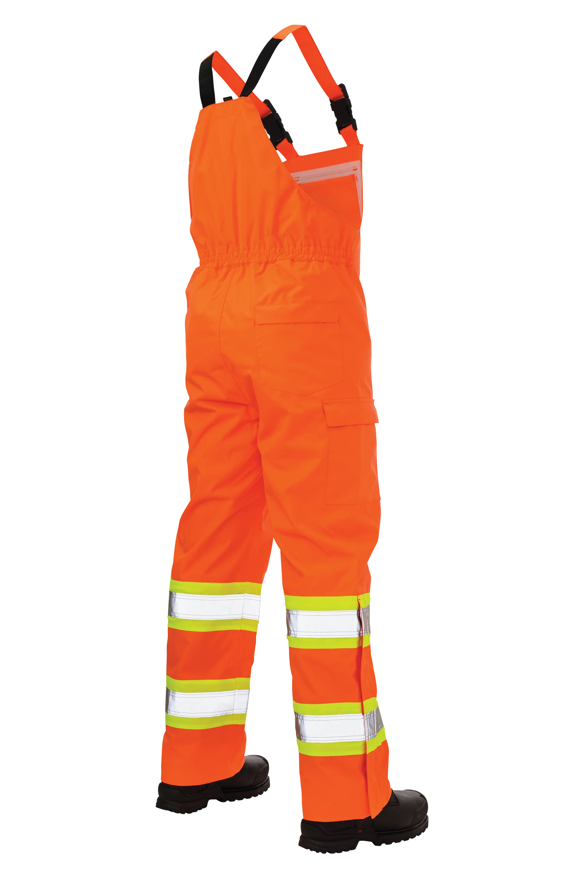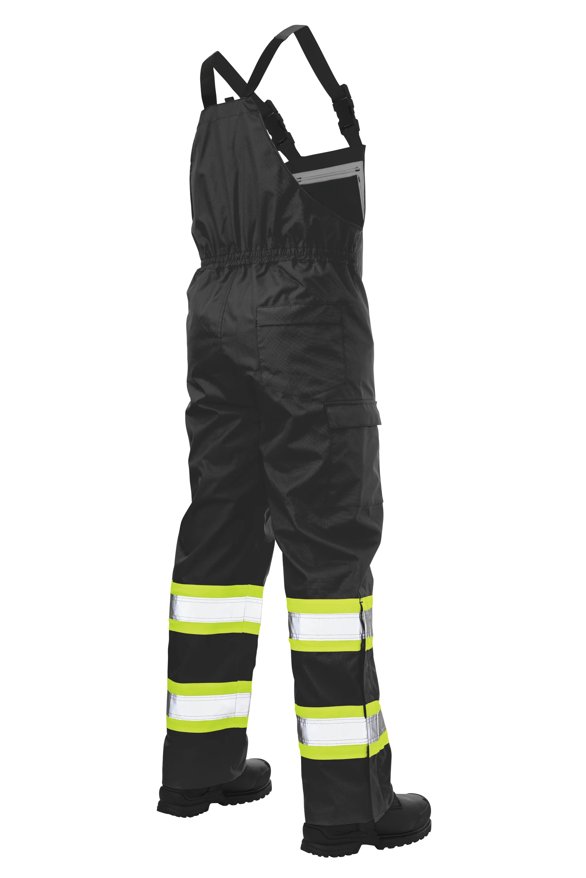 Prepare for anything with our durable bib, designed to withstand the elements. Crafted from 300D ripstop, 100% polyester and featuring waterproof/breathable 5000/5000 MVP/24hr² protection, antifreeze, and durable water-repellent finishes, this bib offers exceptional weather resistance. It features 3M™ Scotchlite™ 2” Reflective Material with a 4″ contrast backing for increased visibility, along with practical details such as an upper chest security pocket, adjustable shoulder straps, and a back elastic waist for a comfortable fit. Additional features include, an inside pocket, 2 cargo pockets with flaps and hook and loop closures, side leg zippers with a storm fly, and a rear security pocket with flap. The turned-under hem allows for a 3″ tall extension, and the bib is seam sealed for added protection.