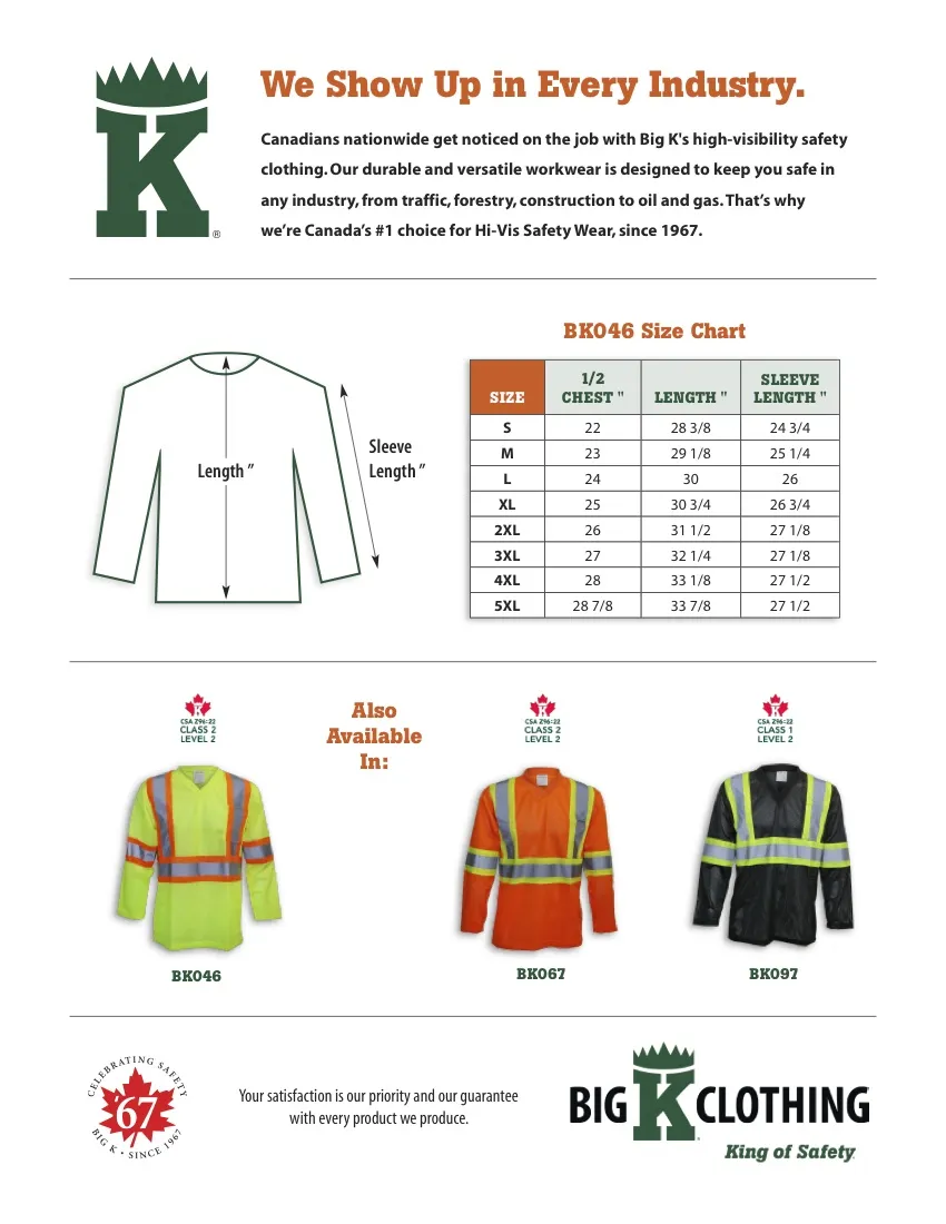 Standard: Org & Lime – CSA Z96-22 Class 2 – Level 2, Black – CSA Z96-22 Class 1 – Level 2