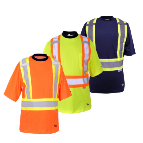 - 2″ Vi-brance® reflective safety material in 4″ contrasting tape meets WCB/Worksafe/DOT configuration