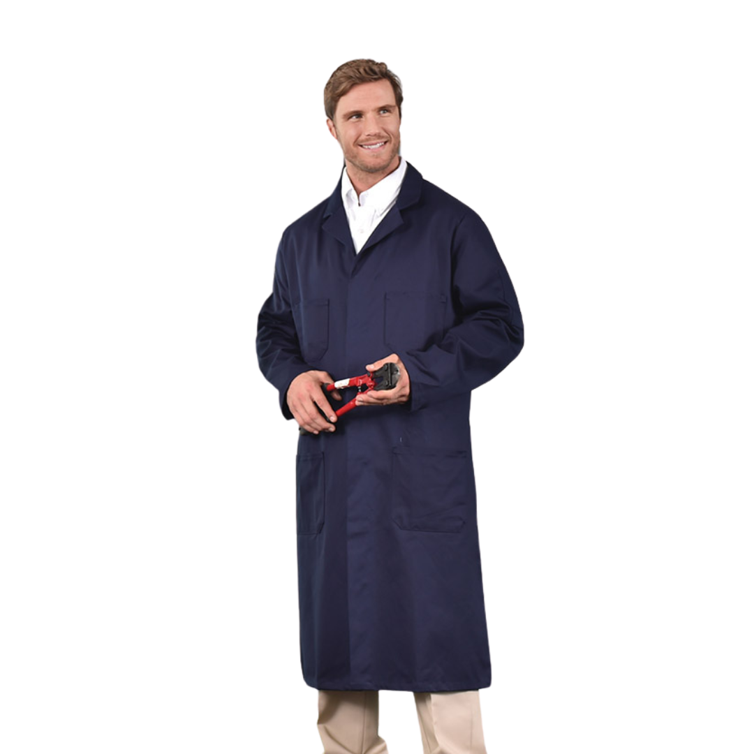 An excellent combination of comfort and durable wear, in 100% cotton twill, makes this shop coat ideal for everything from customer service to industrial work environments.