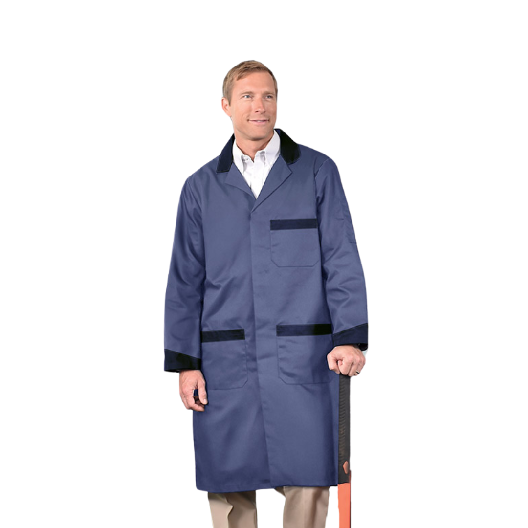 An excellent combination of comfort and durable wear, in 100% cotton twill, makes this shop coat ideal for everything from customer service to industrial work environments.