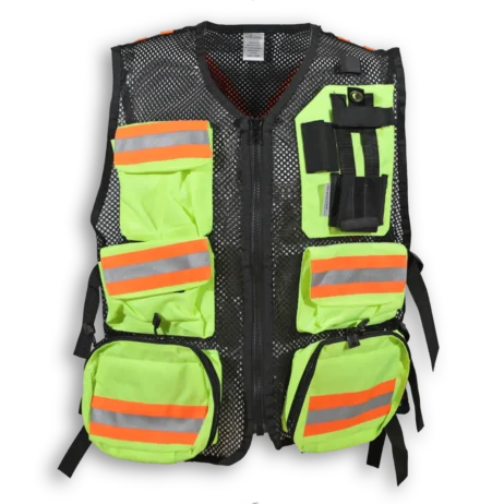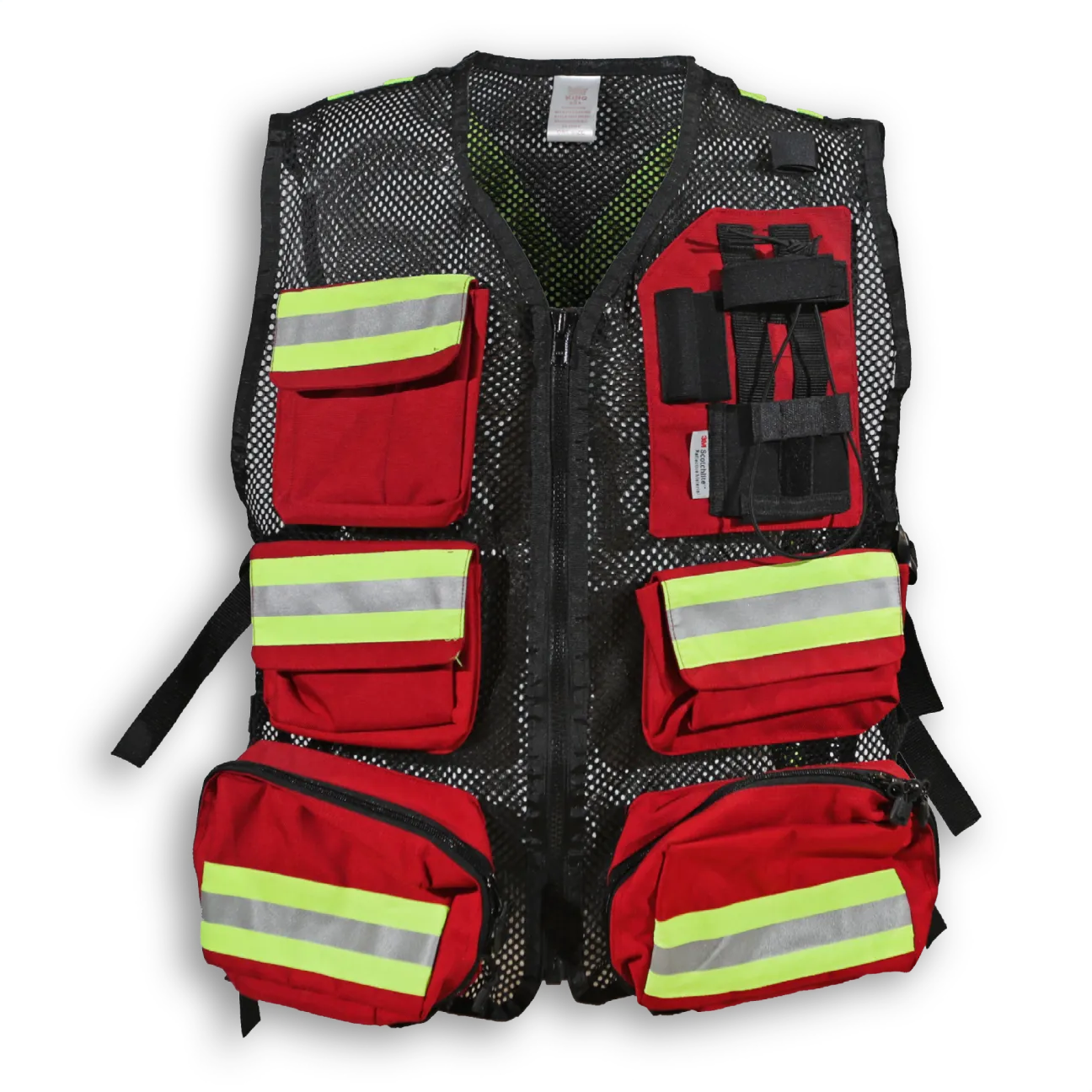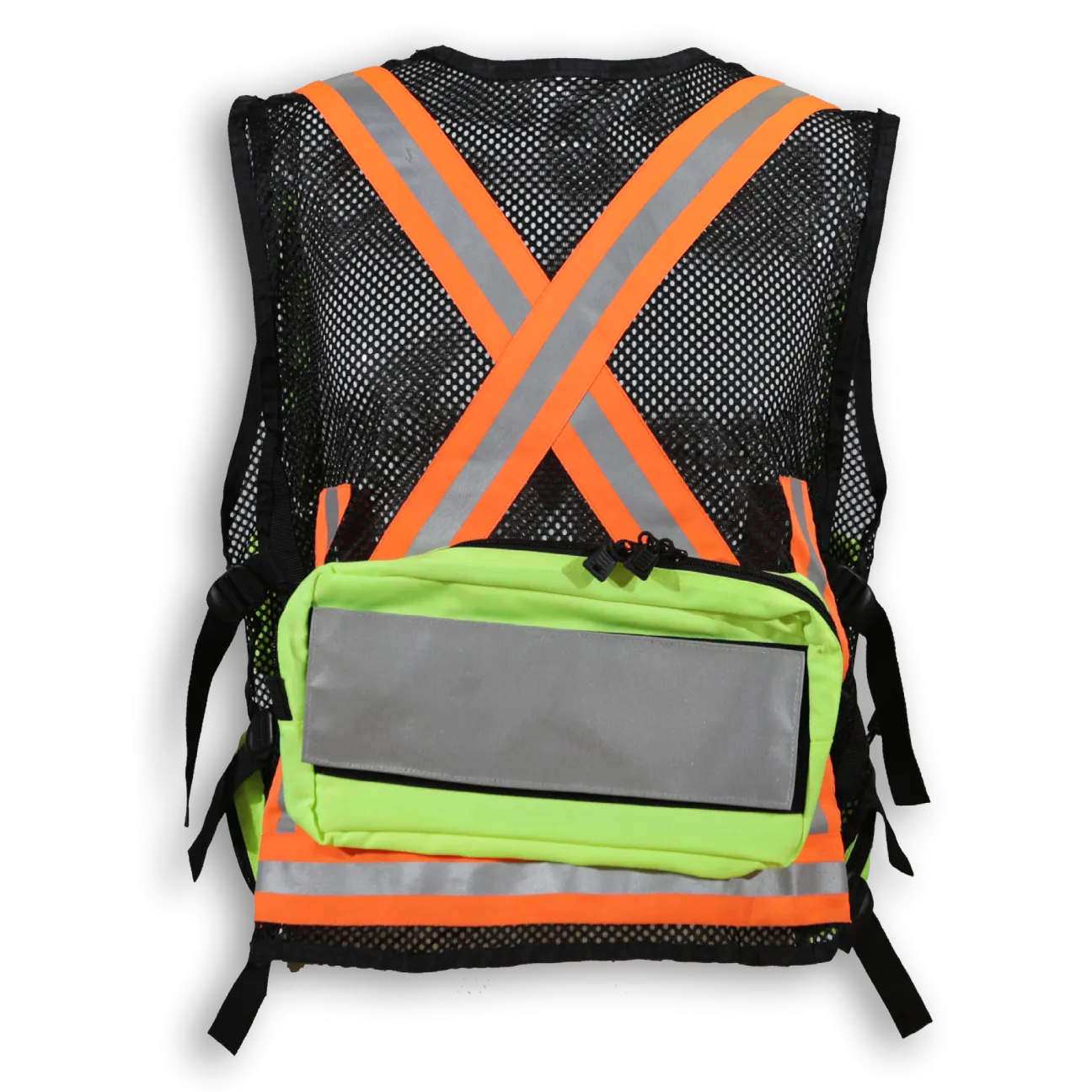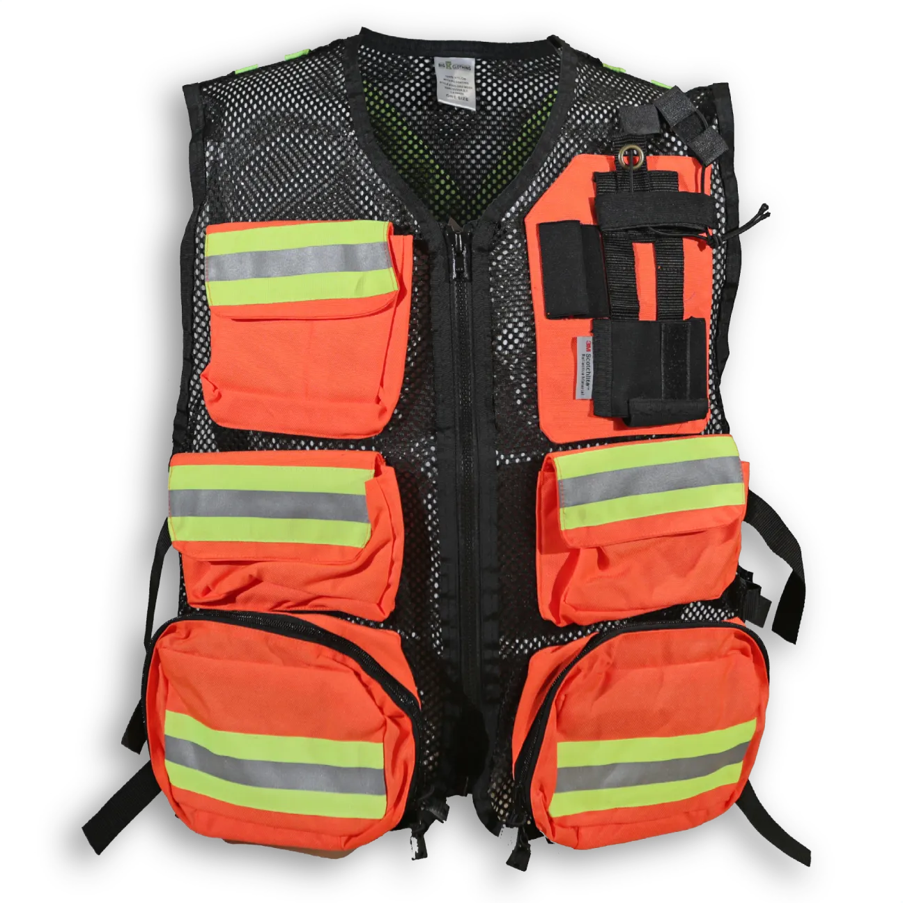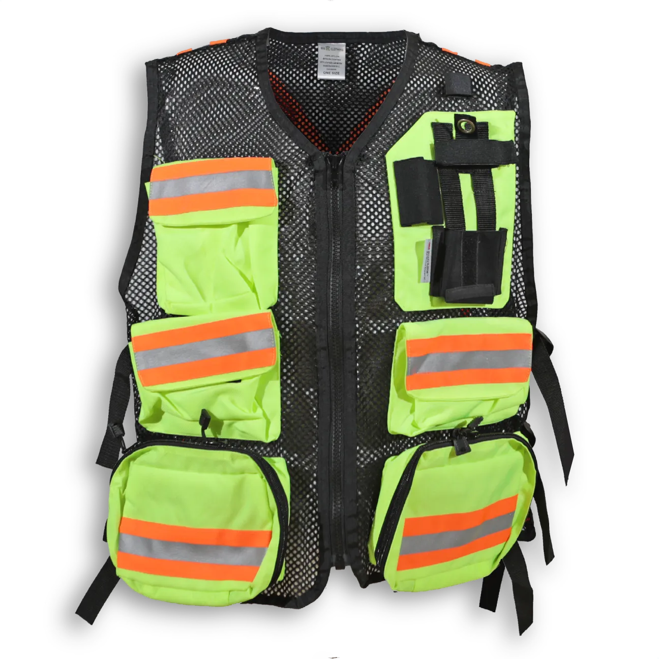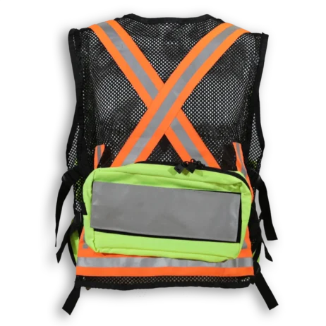 - Back pocket with reflective tape that can be printed with title