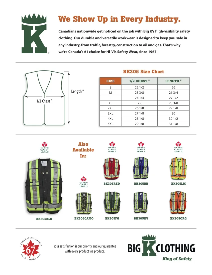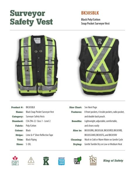 Fabric: 600 Denier Poly Surveyor Safety Vest