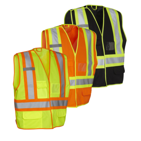 - Retroreflective tape in 4″ contrast fluorescent configuration